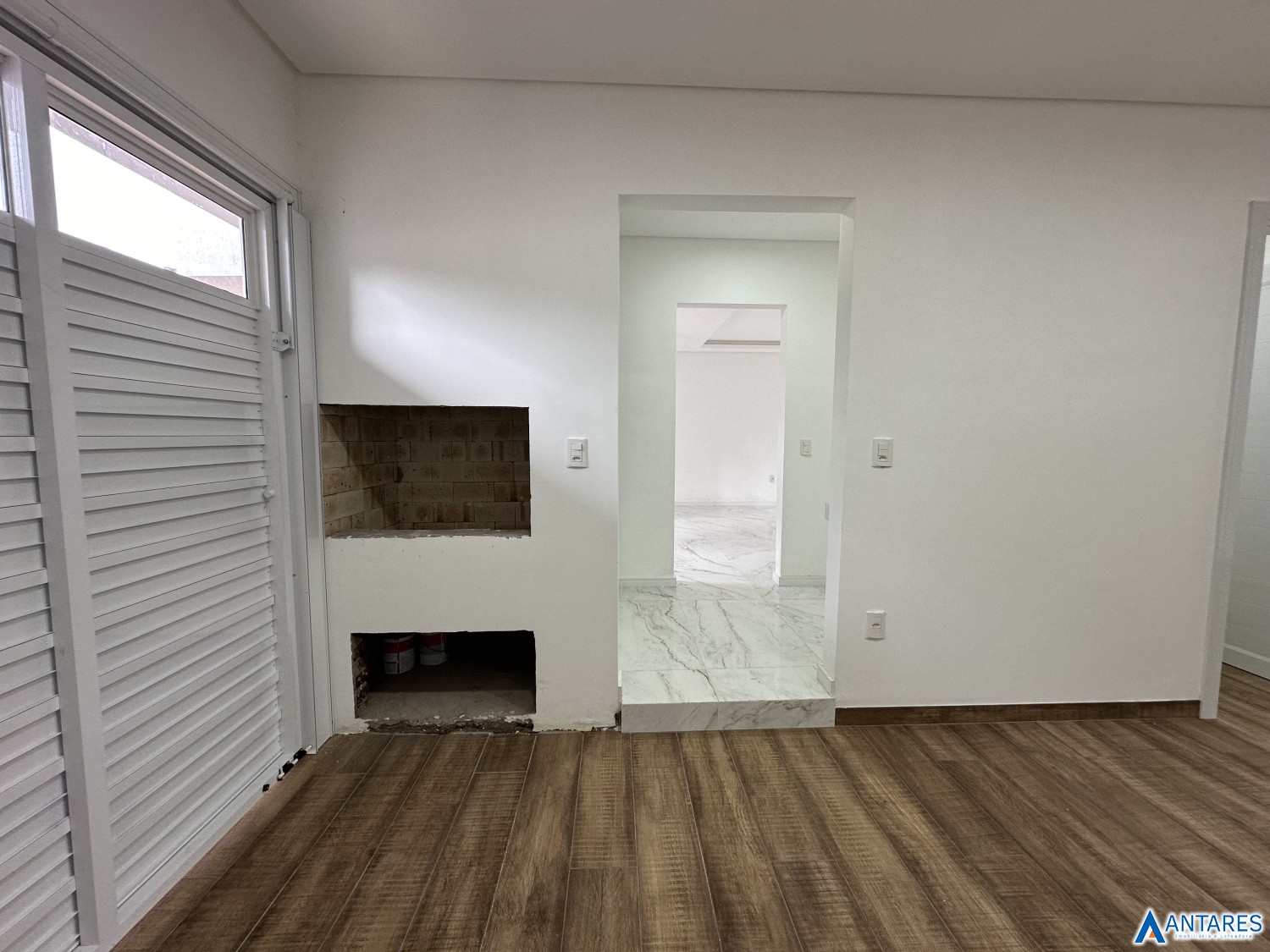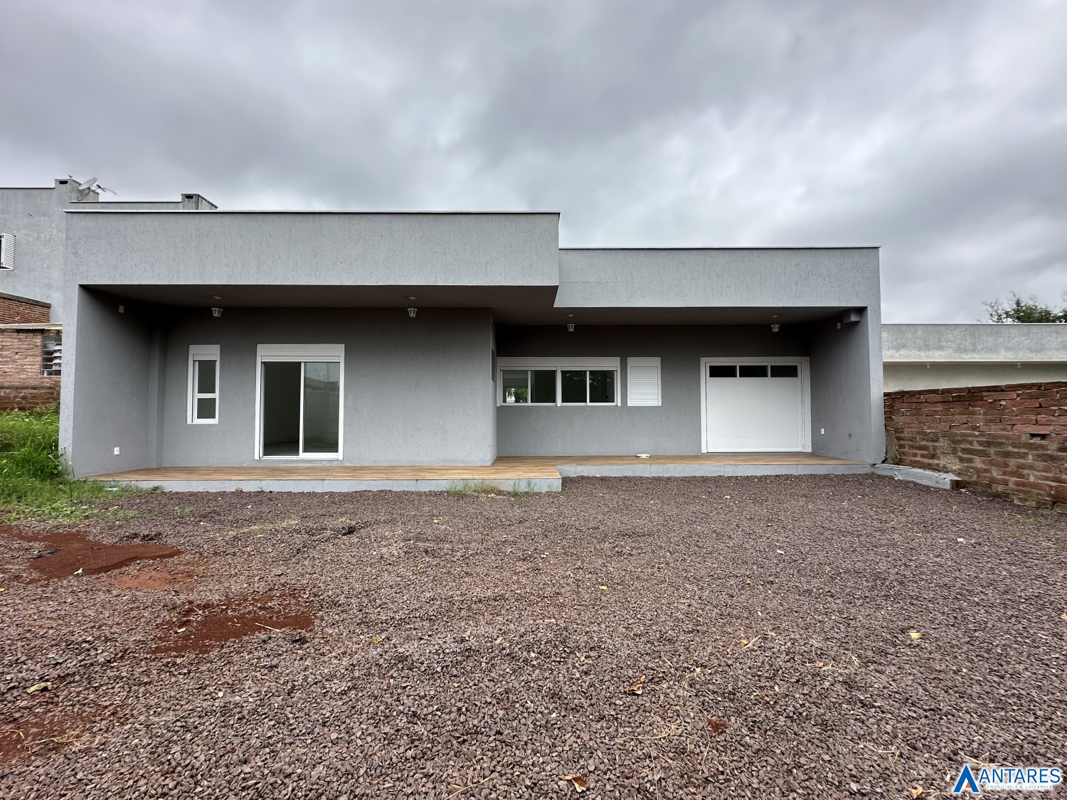 Descrição › Casa Nova - 2 dormitórios sendo 1 suíte, sala de estar e jantar, cozinha, área de serviço, Garagem pra 3 veículos, toda em tijolos maciço, espera para água quente e energia solar,