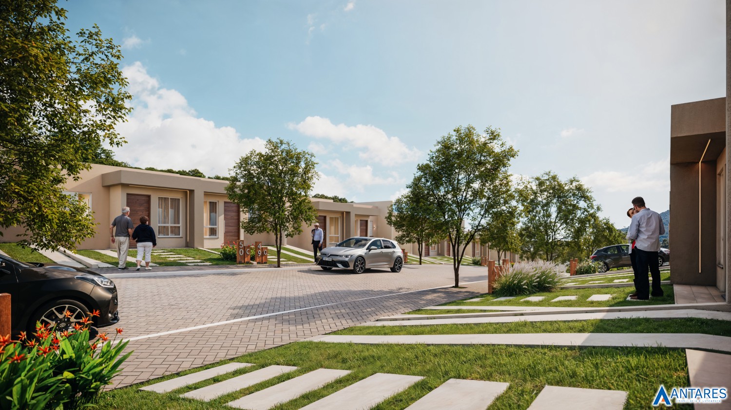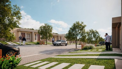 197 casas com 2 dormitórios, 1 banheiro e área total em media de 47,00 m² e valores partem de R$222.990,00. O condomínio oferece diversas comodidades, como área verde, churrasqueira coletiva, piscina, playground e portaria 24 horas. Além disso, conta com sistema de segurança, portão eletrônico e está totalmente cercado.