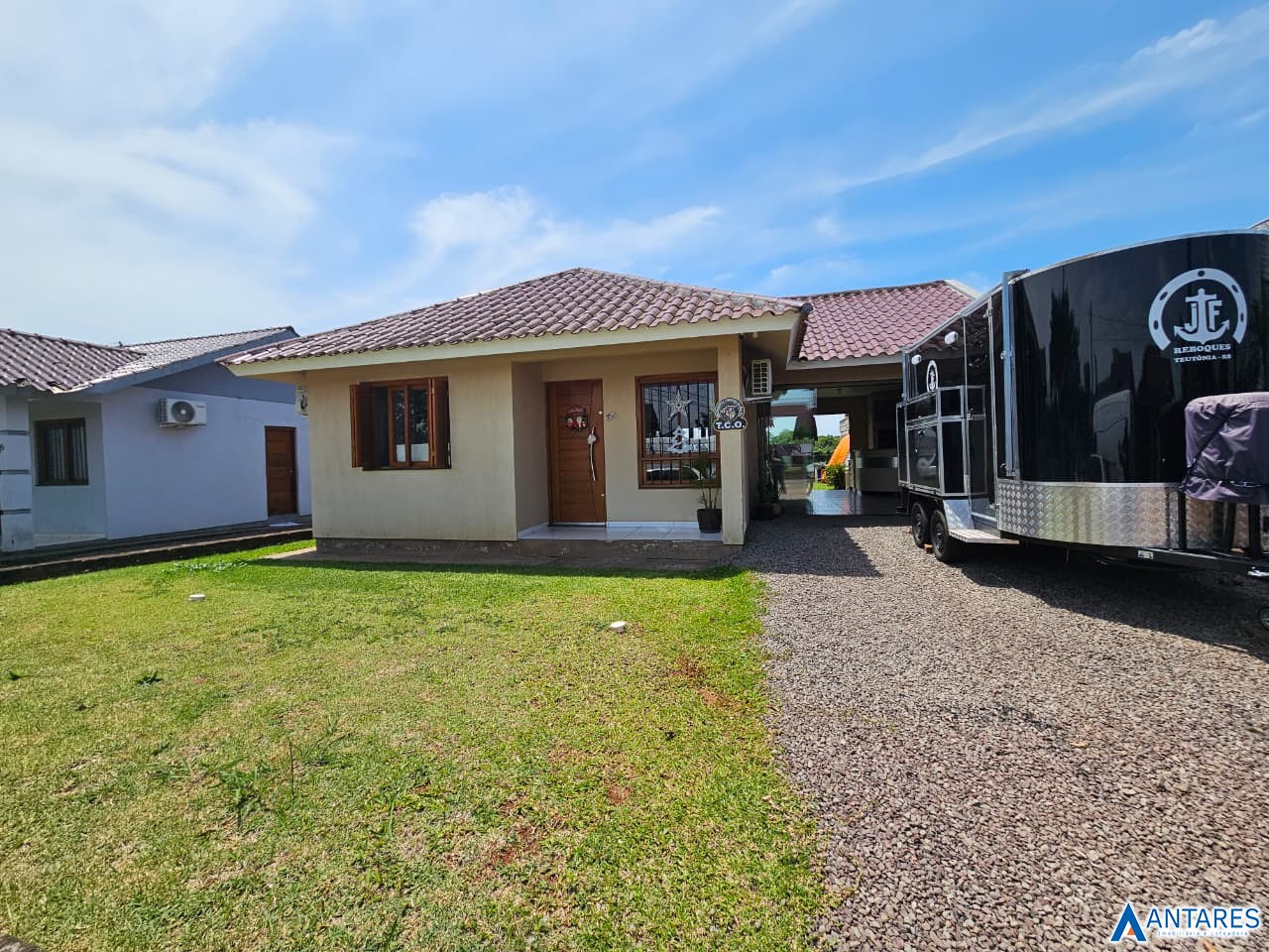 Descrição › Localizada no bairro Campestre, em Lajeado/RS, esta casa de 2 dormitórios e 1 banheiro oferece conforto e praticidade. Com uma área total de 84m², possui esquadrias em madeira, área gourmet, churrasqueira, garagem fechada e um amplo pátio. Ideal para quem busca um imóvel aconchegante e bem localizado. Agende uma visita e conheça mais detalhes desta oportunidade de compra.